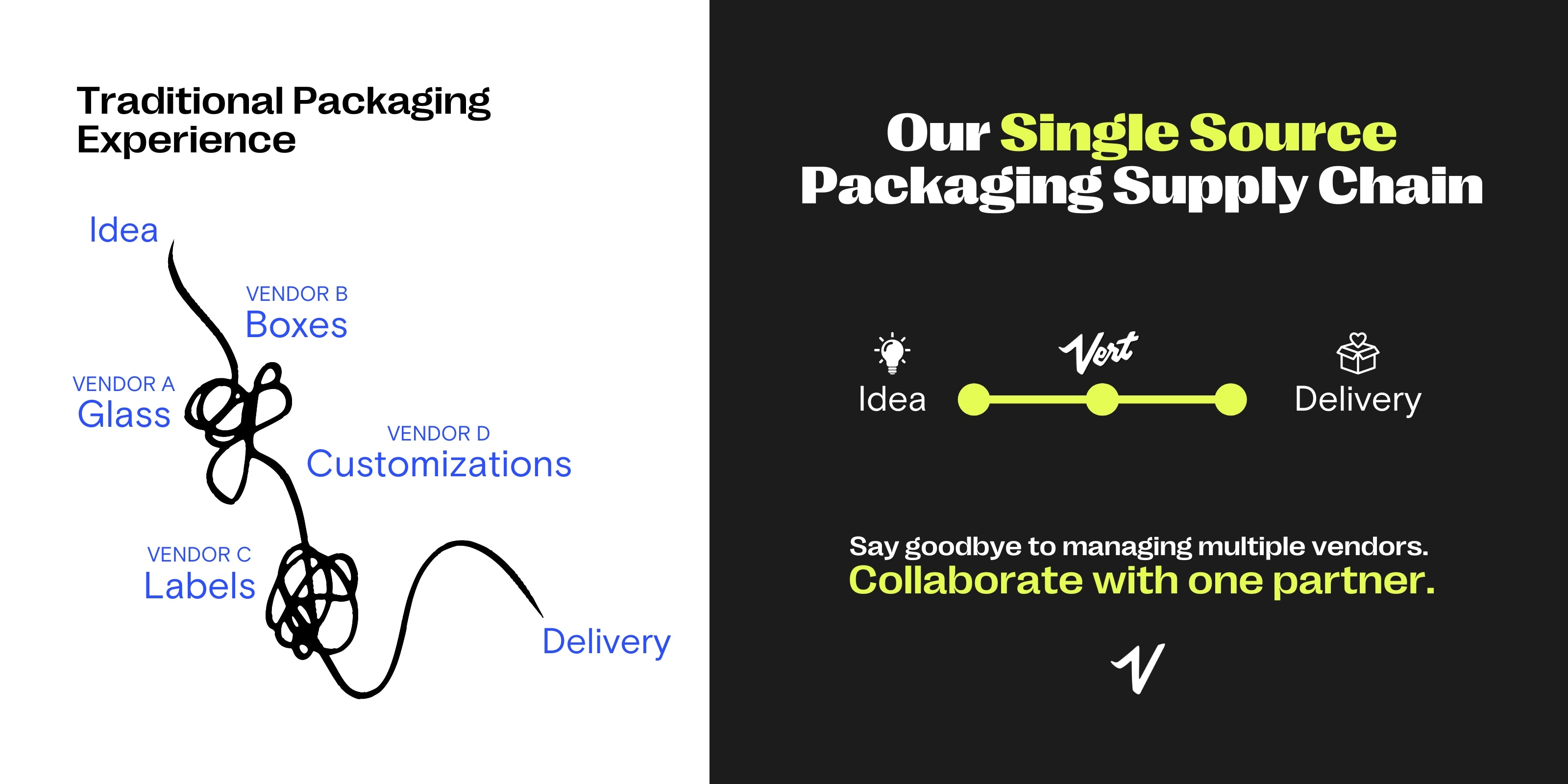 Vert gives modern brands the packaging systems, production network, and support to go from idea to shelf faster and easier than ever before.
